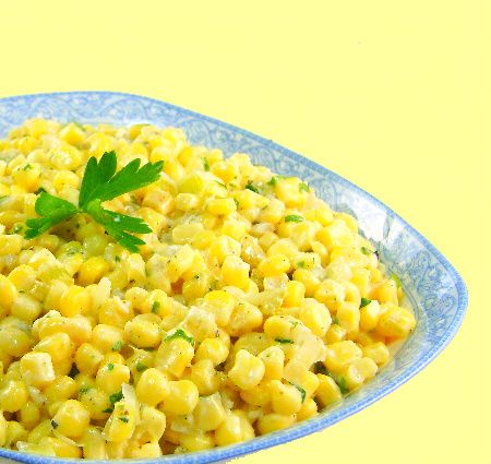 From the kitchen of One Perfect Bite...I often serve this casserole when I have a crowd for dinner and the main course is going to be a plain roast beef or turkey. It's very easy to make, but it gives the appearance of being involved and makes people feel special and fussed over. The dish is very nice when it's made with frozen corn, but it becomes extraordinary when it is made with corn just off the cob. If you decide to use fresh corn, some basic conversion will be necessary. A 10-ounce package of frozen corn contains about 1-3/4 cups of kernels. It takes 2 to 3 ears of corn to yield that amount. Fresh or frozen, you'll need a total of 3-1/2 cups to feed six people. There is one other item of note. The sour cream used in the casserole should be brought to room temperature before it is added to the corn. Sour cream will curdle if it's allowed to boil. Having the cream at room temperature allows the casserole to heat through before the cream has the chance to separate. This is a nice dish to serve on special occasions. I know those of you who try it will enjoy it. There is nothing here not to like. Here's the recipe for my creamy corn casserole.