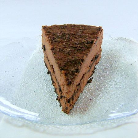 5) Before serving, release sides of pan and remove waxed paper from sides. Using bottom piece of waxed paper, pull cake onto a platter; with a metal spatula, lift cake and remove waxed paper. Using a vegetable peeler, shave remaining 2 ounces chocolate over top of cake. With a knife dipped in hot water, cut cake into 10 slices (wipe off knife, and dip in hot water after each slice). Yield: 10 servings.