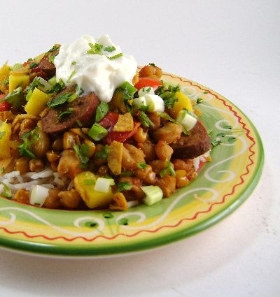 The third recipe in this month's crock-pot series would be given a pass, if pass/fail were the only grading options available. Were I to continue with the baseball analogy used with the other recipes we've featured so far, I'd call this a double play. Let me immediately add that there is nothing wrong with this dish. As a matter of fact, if there are teens in your house it might become a family favorite. My problem is that I think the recipe used to make this very basic dish is contrived. You don't really need a slow cooker to prepare it. This earthy casserole can be simmered stovetop or cooked in a microwave at the same time the rice that accompanies it is made. This is not a dish that needs to simmer for hours at a low temperature. You may want to prepare it that way, but it is not necessary and will add very little flavor to the finished dish. Most of the ingredients used in this stew come from cans and, like all dishes of this type, it is super simple to make. Texture in the dish is provided by the add-ons found at the end of the recipe. Don't forget them. The mango is used to brighten the flavor of the stew. If you don't have one, you can substitute a sweet apple or pear and get nearly the same affect. I think that those of you who are looking for crock-pot or slow cooker recipes will like this a lot. It's easy to do and very affordable. Here's the recipe.