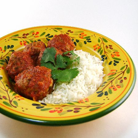 4) Reduce heat to medium-low. Add pureed sauce and return all meatballs to skillet. Cover; simmer, stirring occasionally, 30 minutes. Uncover, and simmer until sauce is thickened, 5 to 10 minutes more. Season with salt and pepper. Serve over rice, sprinkled with cilantro, as desired. Yield: 4 to 5 servings.